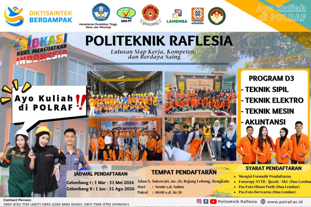 “Dunia berubah begitu cepat, pastikan kamu siap menghadapinya. Bergabunglah menjadi bagian dari Politeknik Raflesia Sekarang Juga.”